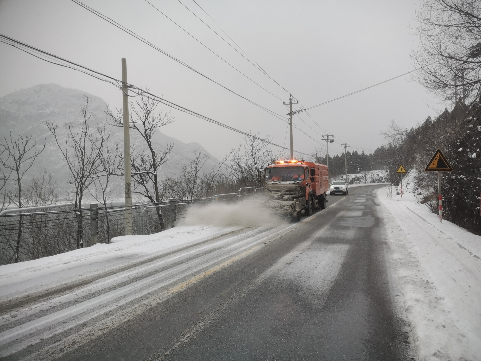 山區(qū)道路清雪作業(yè)(央廣網(wǎng)發(fā) 門頭溝齋堂鎮(zhèn)供圖)