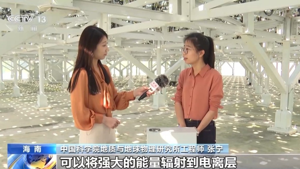 中國科學(xué)院地質(zhì)與地球物理研究所工程師 張寧:通過8320個(gè)組件可以將強(qiáng)大的能量輻射到電離層,然后電離層會(huì)散射微弱的回波信號(hào)。然后我們通過低噪聲放大和波形的編解碼,可以對(duì)微弱的散射信號(hào)進(jìn)行分析,得到電離層的參數(shù),將電離層中電子和離子的狀態(tài),像顯微鏡一樣放大給科學(xué)家。