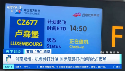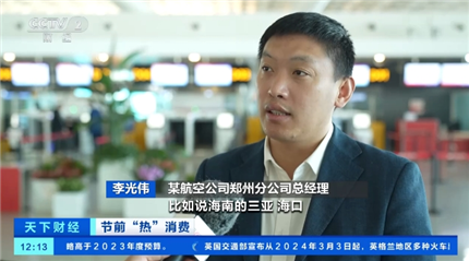 某航空公司鄭州分公司總經(jīng)理 李光偉:目前比較火熱的是春運(yùn)期間的一些旅游航線,比如海南的三亞、???,云南的昆明、西雙版納等熱門航線。相較于11月份、12月份,增長(zhǎng)了10倍左右,票比較緊張。