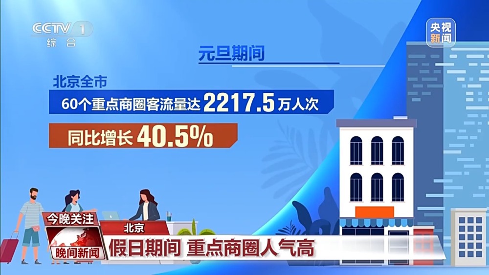 最新數(shù)據(jù)顯示,元旦期間,北京全市60個(gè)重點(diǎn)商圈客流量達(dá)2217.5萬(wàn)人次,同比增長(zhǎng)40.5%。上海全市35個(gè)重點(diǎn)商圈的線下客流總量達(dá)到1548萬(wàn)人次,外來(lái)消費(fèi)發(fā)生消費(fèi)金額為65億元,次數(shù)高達(dá)705.4萬(wàn)人次。