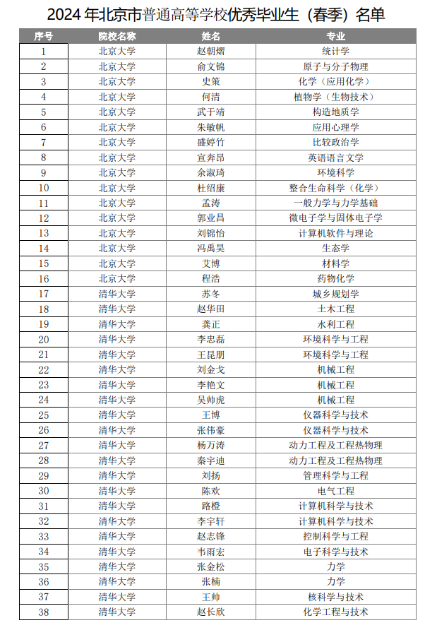 2024年北京市普通高等學校優(yōu)秀畢業(yè)生(春季)名單公布