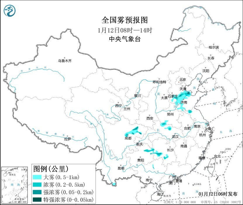 央視網(wǎng)消息:中央氣象臺1月12日06時繼續(xù)發(fā)布大霧黃色預(yù)警:預(yù)計,1月12日的早晨至上午時段,河北南部、山東北部和西部、湖北北部、四川盆地北部、湖南西部、貴州東部等地的部分地區(qū)有大霧天氣,其中山東西北部、四川盆地北部、湖北北部、湖南西部、貴州東北部等地的部分地區(qū)有能見度不足500米的濃霧,局地有能見度不足200米的強濃霧。