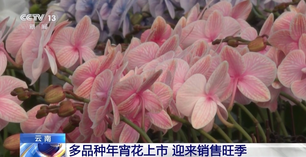 在開遠(yuǎn)市,花卉企業(yè)也迎來春節(jié)前銷售高峰,尤其是蝴蝶蘭,由于花色艷麗,花期長久,成為消費者購買年宵花的首選。
