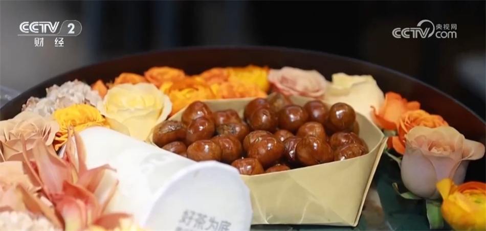 一些商家也是緊跟潮流,順勢(shì)推出“入冬四件套”禮盒。這家花店把鮮花、奶茶、糖葫蘆、糖炒栗子組合起來(lái)售賣,受到許多消費(fèi)者的歡迎。