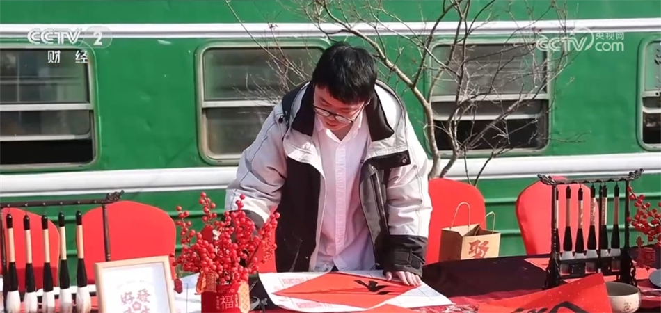 在熱鬧的年豬宴一旁,還有年畫拓印、新年剪紙、福字春聯(lián)的年味集市和打年糕活動(dòng),現(xiàn)場(chǎng)聚集了不少游客參與其中,感受熱鬧的氛圍。