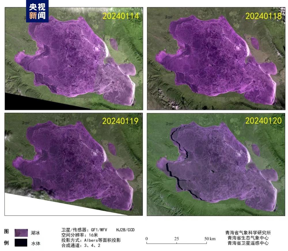 受此影響,1月20日,已完全凍結(jié)的青海湖冰面西部又出現(xiàn)明顯裂縫,裂縫長約98.77千米,最寬處寬約1.8千米。(總臺記者 馬文輝 姚正鵬)