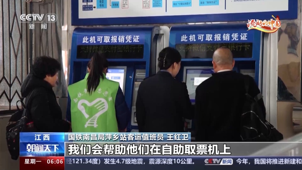 國鐵南昌局萍鄉(xiāng)站客運值班員 王紅衛(wèi):最近,我們也遇到很多老年旅客,我們會幫助他們在自助取票機上打印一張行程信息提示單,行程信息提示單在所乘車次下方會顯示詳細的檢票口和座位號,方便旅客乘車。