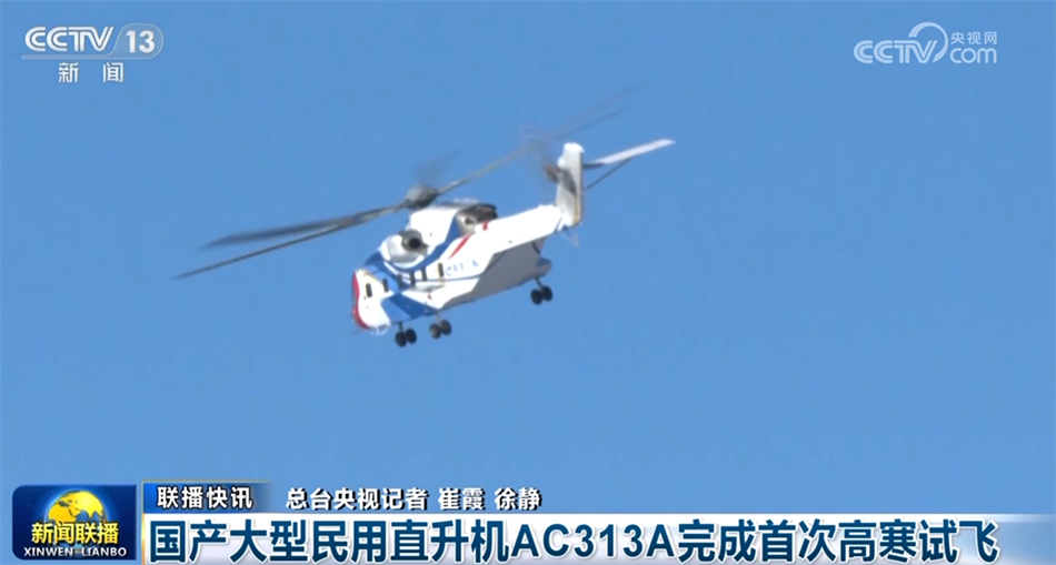 國(guó)產(chǎn)大型民用直升機(jī)AC313A完成首次高寒試飛