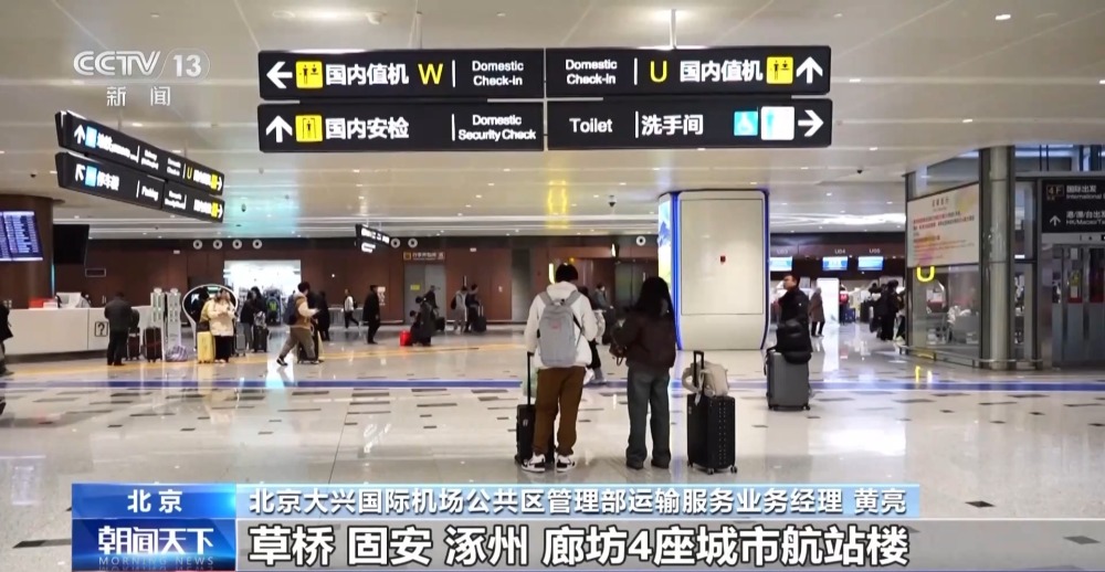 北京大興國際機(jī)場公共區(qū)管理部運(yùn)輸服務(wù)業(yè)務(wù)經(jīng)理 黃亮:大興機(jī)場投運(yùn)4年多來,草橋、固安、涿州、廊坊4座城市航站樓累計(jì)服務(wù)旅客超135萬人次。京雄高速和津興城際鐵路開通,目前每日開行列車26對,覆蓋北京、天津、雄安、霸州、固安、唐山等區(qū)域;通過鐵路換乘,大興機(jī)場兩小時(shí)地面交通圈可以覆蓋京津冀地區(qū)主要城市。
