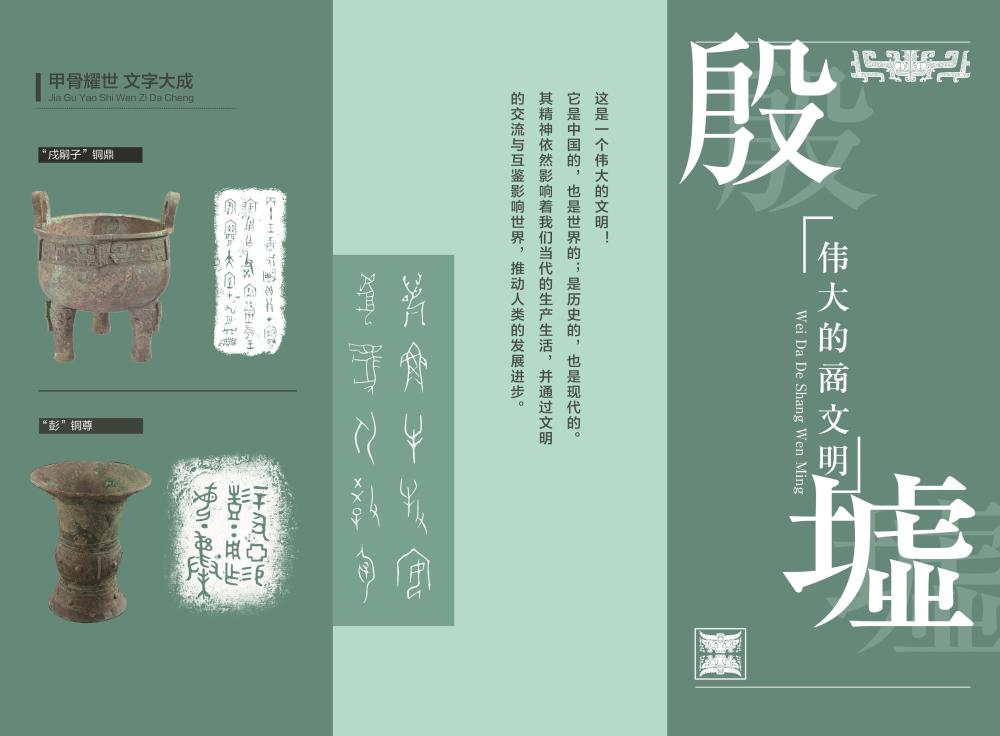 基本陳列將長期對(duì)公眾開放,展示幾代殷墟考古人接力前行、不斷求索,取得了一次又一次重要發(fā)掘成果,對(duì)夏商都邑的深入研究,為不同時(shí)期不同區(qū)域的商文化研究提供了對(duì)比標(biāo)尺。眾多首次亮相的各類珍貴文物再現(xiàn)了商朝繁盛的城市文明,完善的禮樂文明、發(fā)達(dá)的青銅文明、燦爛的文字文明以及高超的科技文明。全面系統(tǒng)地展現(xiàn)了我國商代晚期都城的風(fēng)貌,讓全世界看到一個(gè)中華文明早期發(fā)展階段最為輝煌的時(shí)代——大邑商。