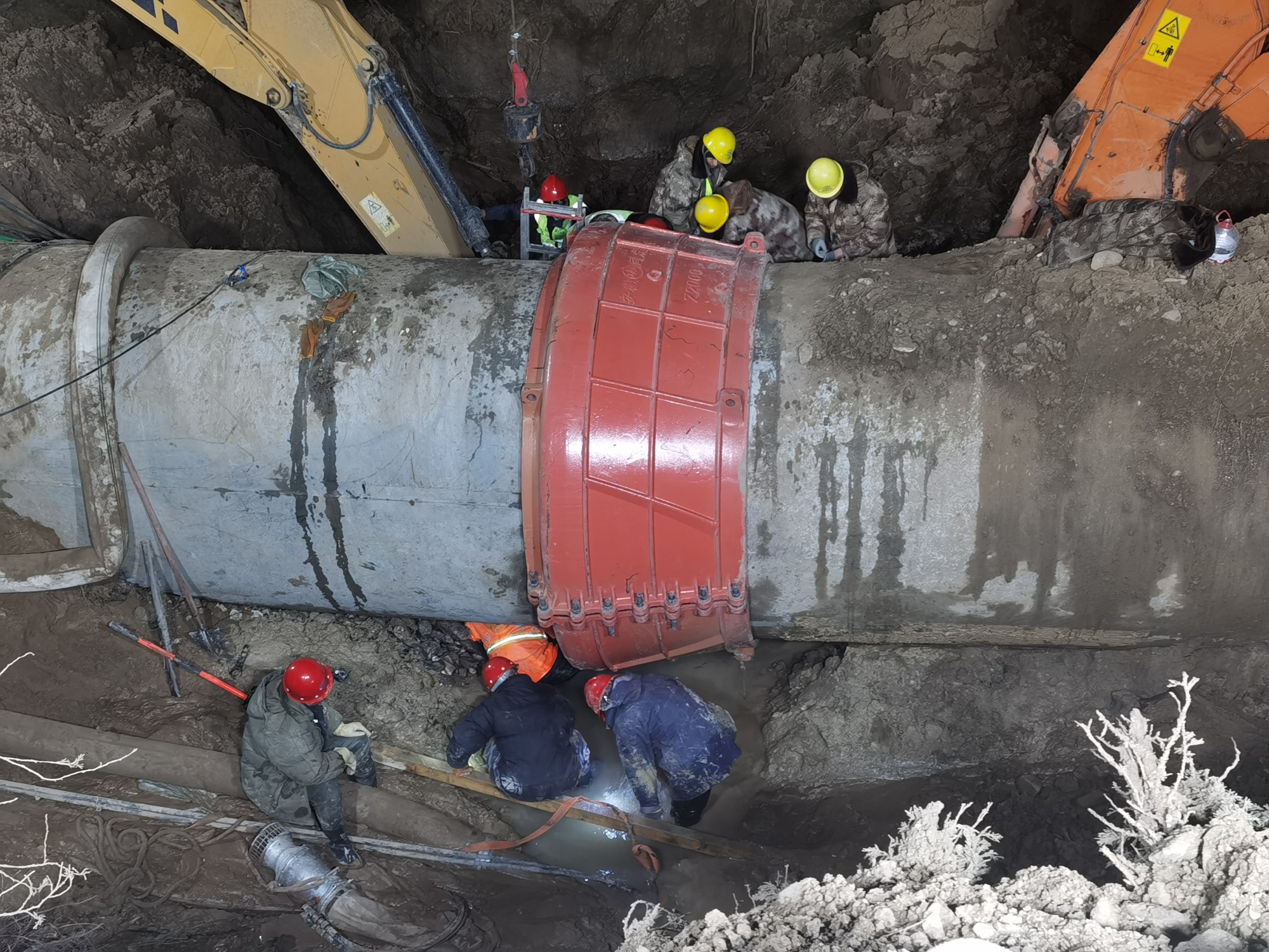 張文偉說:“因為這個管道是個兩米直徑的供水管線,是個主管線,它破裂以后水量特別大。管線是在耕地上,維修車輛是進不去的。維修首先得修筑施工通道,所有車輛人員靠近不了,然后關(guān)閘停水,走施工通道過去以后,進行原有管道抽排,管道里都是滿水,必須把水排干凈才能搶修,才能發(fā)現(xiàn)它是哪兒壞了,我們采取哪種方式來進行搶修。搶修方案有很多種,我們也提前都有預(yù)案。所以抽水時間很長,上游就有7萬多立方的水,抽排就是一個很大的難點?!?/p>