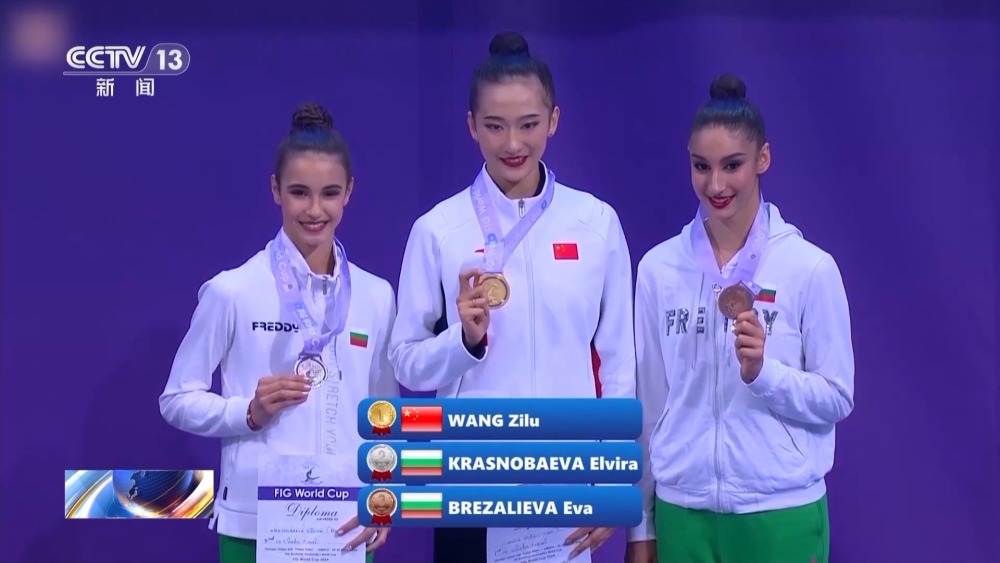 最終王子露力壓兩名保加利亞選手,以32.700分獲得棒操金牌。王子露實現(xiàn)了中國隊在藝術(shù)體操世界杯上,個人項目金牌0的突破。不過在個人全能賽中,王子露最終僅排名第21位,另一名中國選手趙雅婷排名第22。