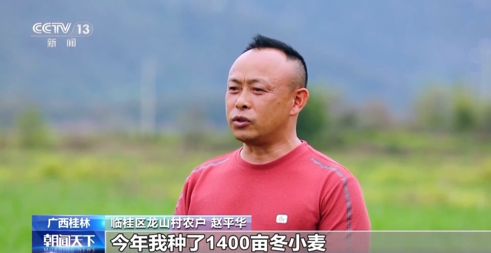 臨桂區(qū)龍山村農(nóng)戶 趙平華:今年我種了1400畝冬小麥,現(xiàn)在進入抽穗期,4月中旬進入揚花期,接下來我要加強管理,爭取今年有個好收成。