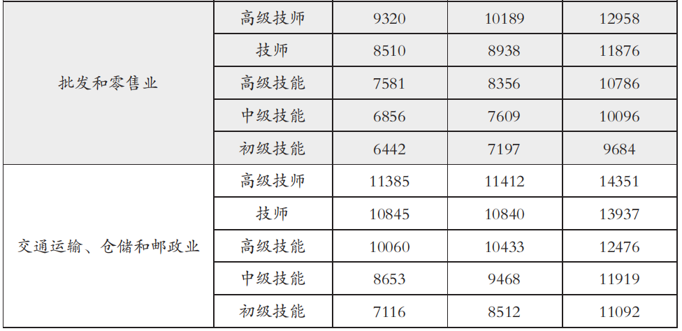一季度部分行業(yè)各等級技能人才薪酬分位值(單位:元/月)(圖源:北京市人力資源和社會保障局官方網(wǎng)站截圖)