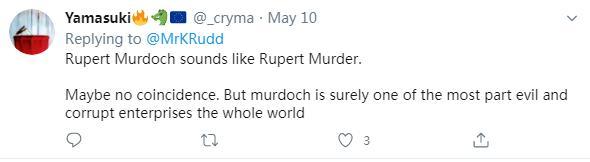 就陸克文提出的質(zhì)疑,網(wǎng)友紛紛表示贊同。有網(wǎng)友說,默多克集團(tuán)無(wú)疑是全世界“最腐敗”的企業(yè)之一。