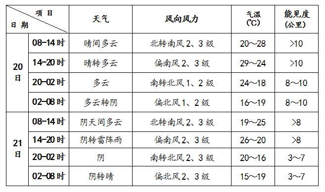 21日傍晚可能出現(xiàn)雷陣雨天氣,雨量不大,請關(guān)注最新天氣預(yù)報(bào);大部分時間體感舒適,但晝夜溫差較大,早晨體感偏涼,午后偏熱,請根據(jù)氣溫變化及時調(diào)整著裝,以防感冒。