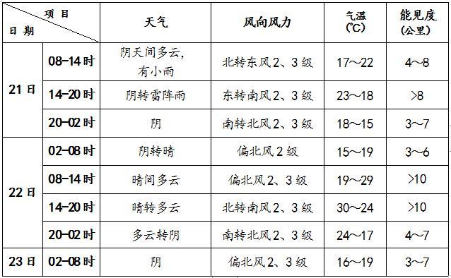 預(yù)計(jì)23-28日期間,大部分時(shí)間本市天氣為晴到多云。受冷空氣影響,23日天空云量較多,夜間山區(qū)有陣雨,降雨對城區(qū)影響不大;24-26日多3、4級偏北風(fēng)。該期間氣溫呈上升趨勢,白天最高氣溫24~34℃,夜間最低氣溫15~20℃。