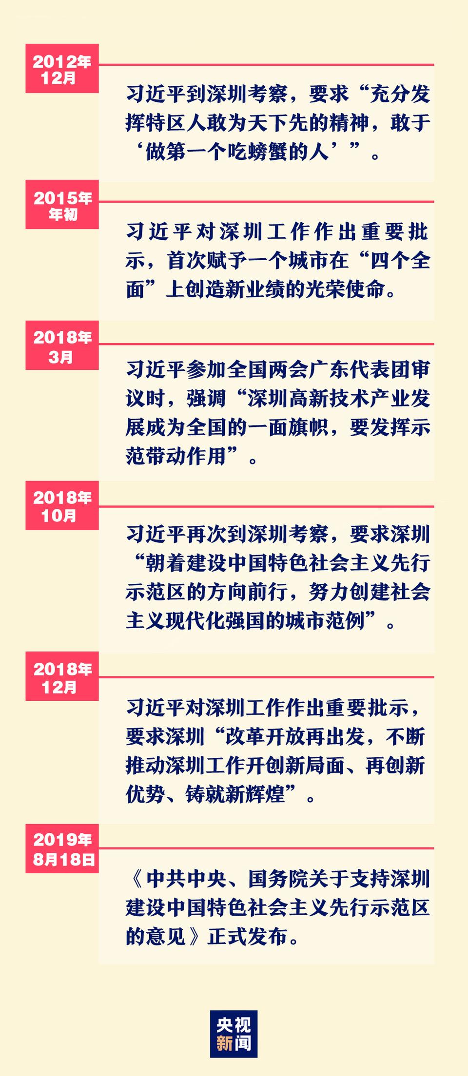 在習(xí)近平總書(shū)記的親自謀劃、親自部署、親自推動(dòng)下,2019年8月18日,《中共中央、國(guó)務(wù)院關(guān)于支持深圳建設(shè)中國(guó)特色社會(huì)主義先行示范區(qū)的意見(jiàn)》正式發(fā)布。這是繼興辦經(jīng)濟(jì)特區(qū)后,深圳迎來(lái)的又一重大歷史機(jī)遇。從試驗(yàn)田到先行示范區(qū),深圳承載的不僅是改革開(kāi)放的先鋒使命,更是中華民族偉大復(fù)興的責(zé)任與擔(dān)當(dāng)。