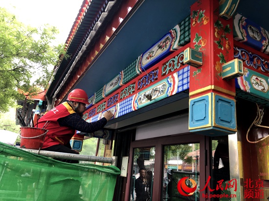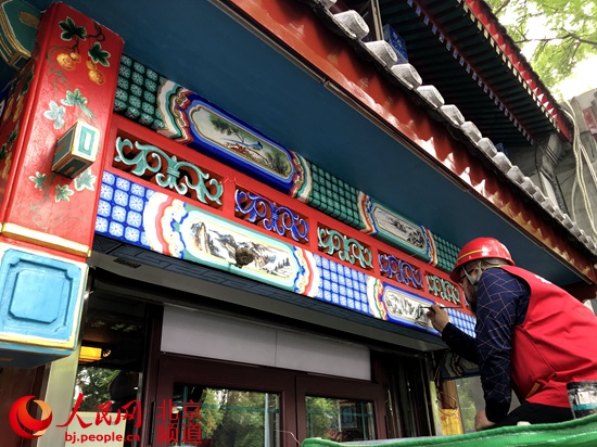 人民網(wǎng)北京5月14日電(池夢(mèng)蕊)初夏時(shí)節(jié),北京南池子大街、北池子大街和東華門大街上綠樹(shù)成蔭。建設(shè)者們?cè)诮值纼蓚?cè)的小型圍擋內(nèi)忙碌著,對(duì)著一處處木門、門頭、外墻、屋檐和門廊彩繪如切如磋、如琢如磨。