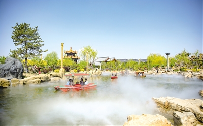 5月9日,游人在網(wǎng)紅惱包村的人工湖中坐船游覽美景。連日來,呼和浩特市氣溫逐步上升,綠葉、青草和鮮花為城市帶來了生機(jī)和活力,不少市民來到戶外,與親朋好友共度休閑時光。 (牛天甲)