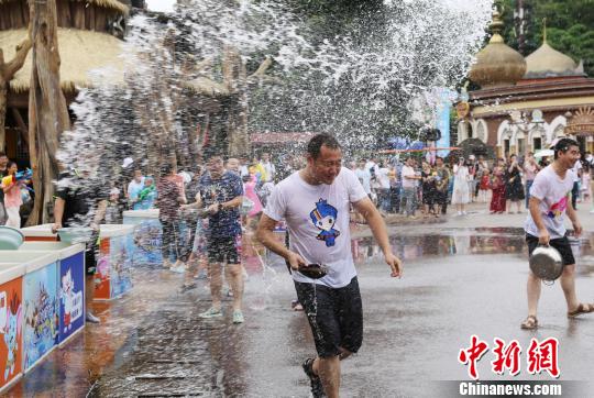 圖為游客們手持水槍、水盆等道具展開“激戰(zhàn)”。 鐘欣 攝