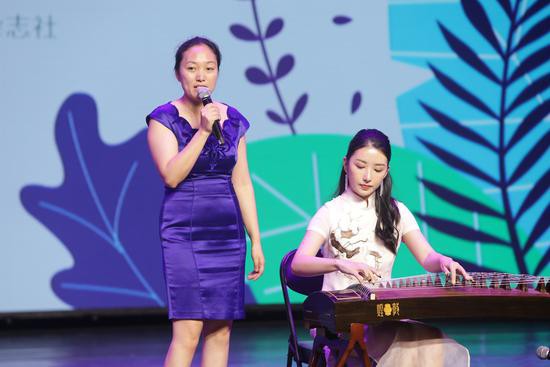 繪本劇也是在閱讀的基礎(chǔ)上延展的一種表演形式,是“閱讀+”的一次探索。本次活動的主持人,來自中央廣播電視總臺的主持人賀超,邀請中央音樂學院音樂教育學者管慧丹和青年古箏演奏家侯奕上臺,為大家展示 “閱讀+”的另一種表演形式——古詩詞唱讀。伴隨著悠揚的古箏琴聲,全場吟唱,在座的每位觀眾都深深地感受到中國傳統(tǒng)文化的魅力。