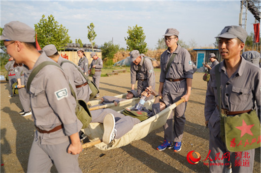 參觀結(jié)束后,學(xué)員推起獨(dú)輪車、挑起扁擔(dān),將“軍糧”送往抗戰(zhàn)一線。耳畔響起的是陳毅元帥曾說(shuō):“淮海戰(zhàn)役的勝利是老百姓用小車推出來(lái)的”。抬起受傷的“戰(zhàn)友”送往“后方”救治。一系列有感染力和實(shí)操性的軍事化體驗(yàn)教學(xué),讓黨性教育更“走心”。