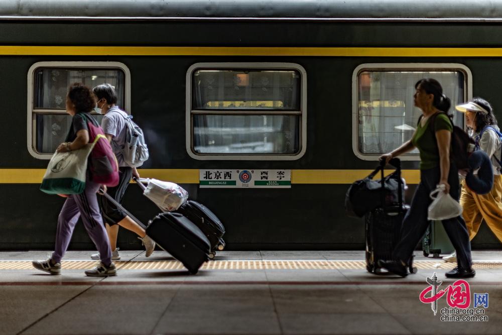 7月1日,“京藏號”旅游列車從北京西站出發(fā),450名游客開啟為期14天的旅途。中國網(wǎng)記者 鄭亮攝