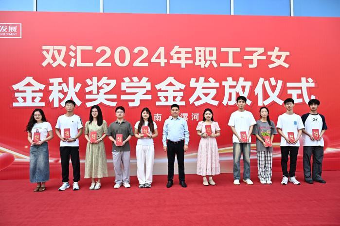 活動(dòng)現(xiàn)場(chǎng),雙匯發(fā)展總裁馬相杰,黨委書記、工會(huì)主席杜俊甫,副總裁周霄為學(xué)生代表發(fā)放獎(jiǎng)學(xué)金并合影留念。其他職工子女現(xiàn)場(chǎng)領(lǐng)取獎(jiǎng)學(xué)金。