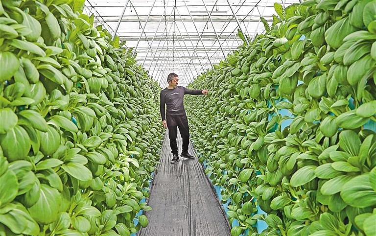 圖為那曲市浙江產(chǎn)業(yè)援藏精準扶貧示范基地的工作人員查看氣霧栽培蔬菜的長勢。 記者 次旺 攝