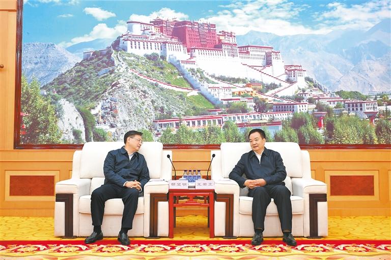 9日下午,自治區(qū)黨委書記王君正在拉薩與中國寶武鋼鐵集團(tuán)黨委書記、董事長胡望明一行座談。