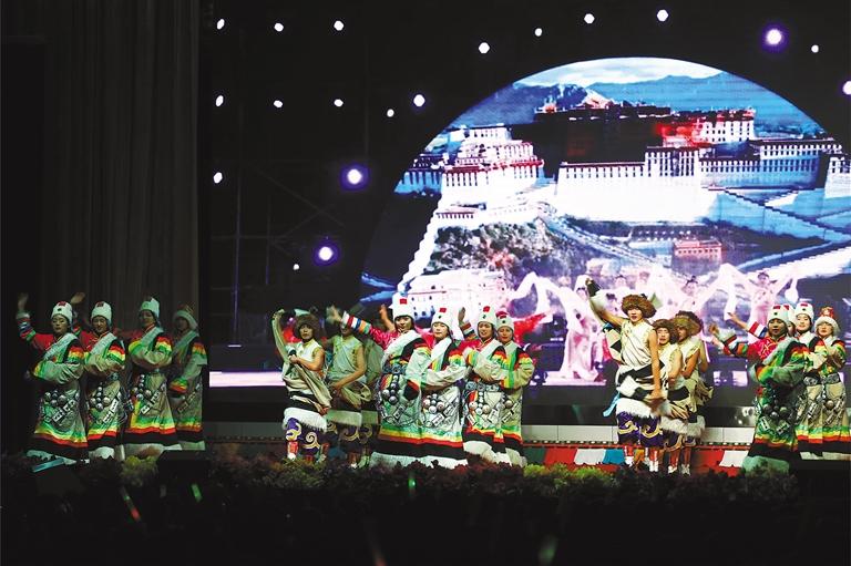 拉薩北京實驗中學(xué)學(xué)生表演民族舞蹈。 (本版圖片均由拉薩北京實驗中學(xué)提供)