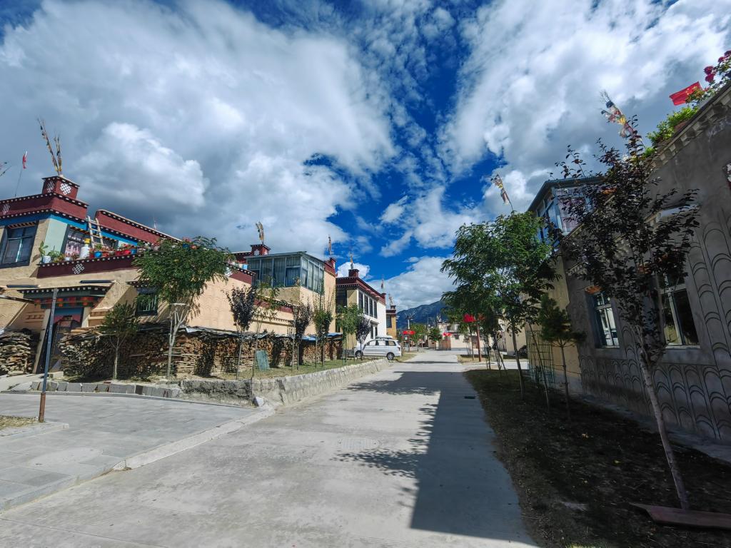 西藏山南市扎囊縣阿扎鄉(xiāng)章達(dá)村,搬遷后的村民住進(jìn)了水泥框架結(jié)構(gòu)的藏式新房。新華社記者侯韶婧 攝