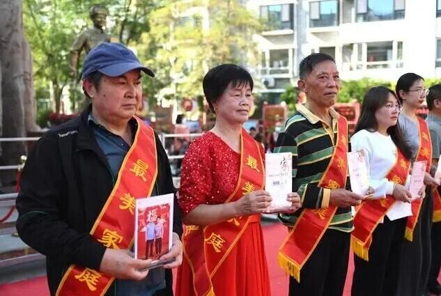 9月25日,寧夏銀川市長城花園社區(qū),居民領(lǐng)取社區(qū)“最美家庭”獎。