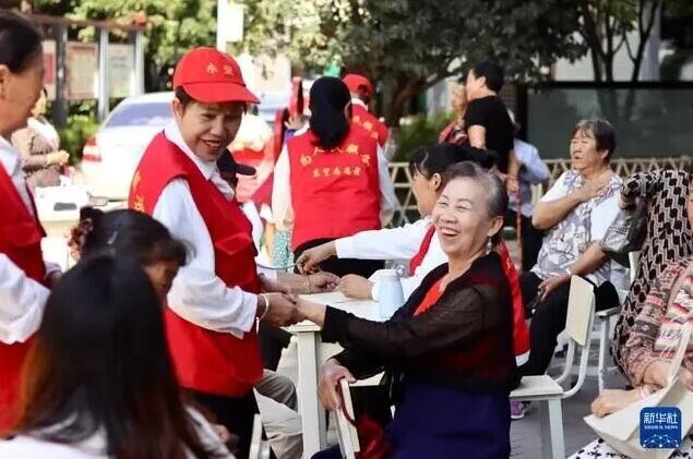 民族團(tuán)結(jié)進(jìn)步創(chuàng)建進(jìn)社區(qū)。這是9月20日,獲評“全國民族團(tuán)結(jié)進(jìn)步模范集體”的昆明市盤龍區(qū)聯(lián)盟街道小壩社區(qū)志愿者為居民提供志愿服務(wù)。(莫欣竹 攝)