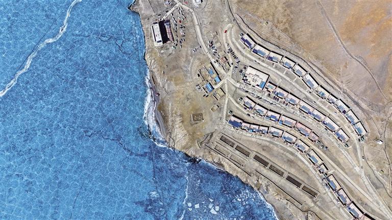 浪卡子縣打隆鎮(zhèn)推瓦村,南部與不丹接壤,邊界線長(zhǎng)達(dá)25公里,是世界上海拔最高的純牧業(yè)行政村之一。全村共有40戶人家,153位村民在此生活。2月6日,記者踏入推瓦村,首先映入眼簾的是遠(yuǎn)處的普姆擁措湖,湖面在陽(yáng)光的照耀下波光粼粼,與錯(cuò)落有致的雪山相互映襯,構(gòu)成一幅絕美的畫面。沿著平坦的柏油馬路前行,道路兩旁整齊排列的路燈和一排排以溫馨黃色為主色調(diào)的邊境小康房格外引人注目。漫步在臨近冰湖的村路上,悠然愜意之感油然而生,雪山、湖泊、村落與村民們和諧相融,共同繪就了一幅寧?kù)o祥和的鄉(xiāng)村畫卷。