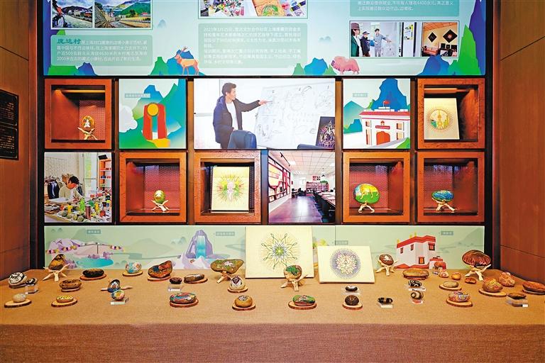 據(jù)悉,展覽還同步展出了龐達村的村民們在索喃次仁帶領(lǐng)下創(chuàng)作的石繪作品,作品所用的石頭均來自亞東,有力傳遞了邊境村民們的“強邊”心聲。