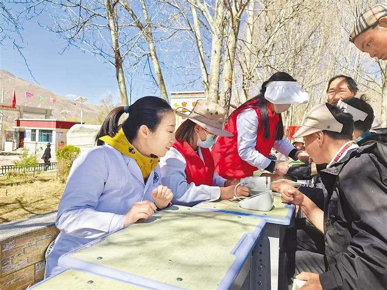 圖為北京市門頭溝區(qū)援藏醫(yī)療隊(duì)正在古榮鎮(zhèn)開展義診活動(dòng)。本報(bào)記者 盧文靜 攝
