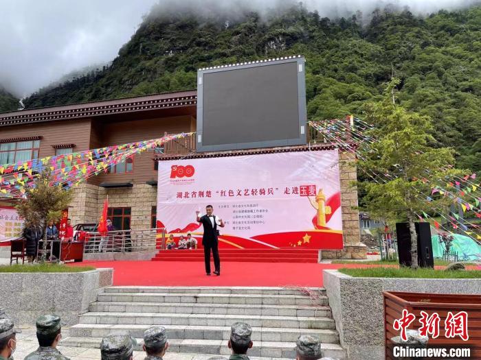 此次慰問演出中,“紅色文藝輕騎兵”小分隊(duì)穿行高原崎嶇的山路,翻越數(shù)座海拔5000多米的雪山,穿越雅魯藏布大峽谷,把歌聲和祝福送到邊境地區(qū)。