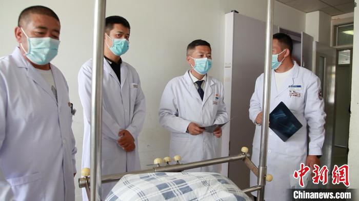 圖為郭勇(右二)與第四批北京援青干部俞杰(右三)查房?!∩s泫i 攝
