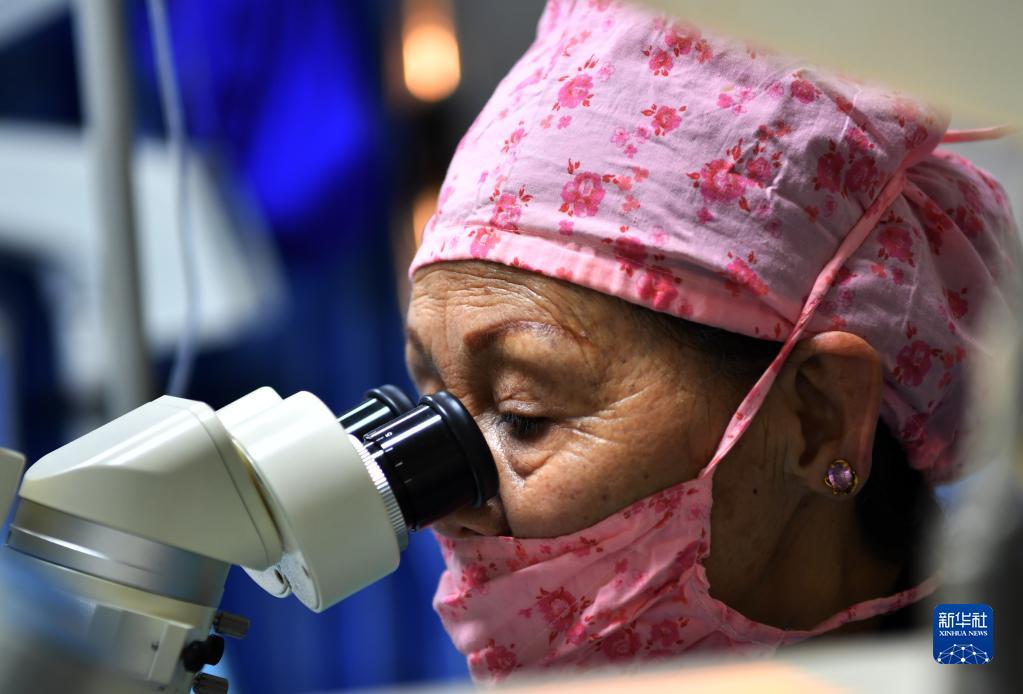 藏族眼科專家卓嘎給患者實(shí)施復(fù)明手術(shù)(3月24日攝)。新華社記者覺果 攝