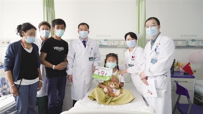 先心病患兒與武漢協(xié)和專家合影。