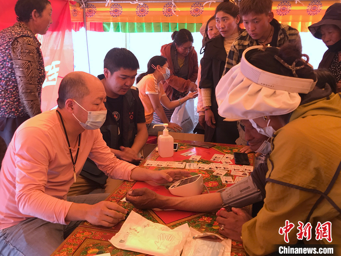圖為7月10日,醫(yī)療專(zhuān)家在邊壩縣尼木鄉(xiāng)義診。 中新社記者 陳建新 攝