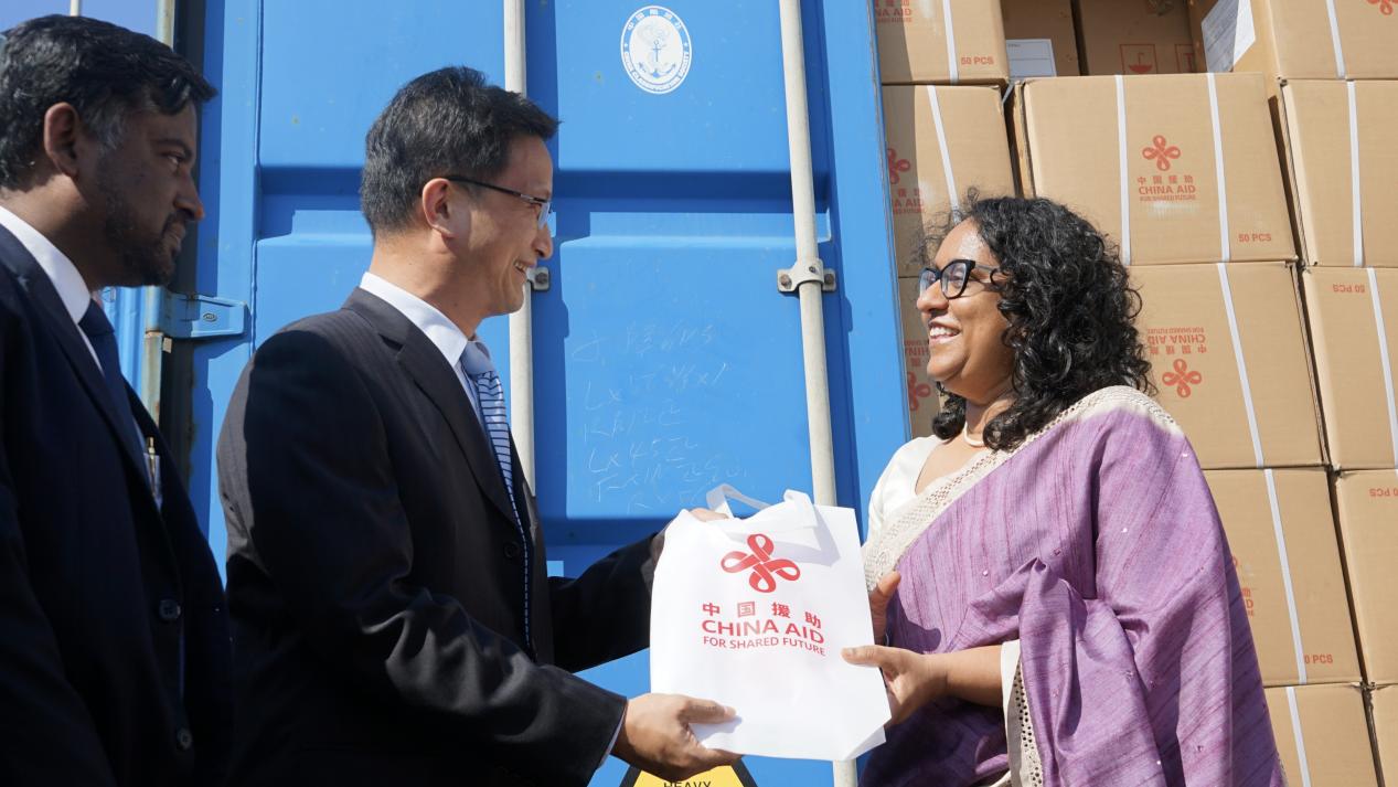 圖為2026年1月13日,中國(guó)駐斯大使戚振宏與斯總理阿馬拉蘇里亞前往科倫坡國(guó)際集裝箱碼頭迎接中國(guó)援斯2026年校服布料。來(lái)源:中華人民共和國(guó)商務(wù)部網(wǎng)站