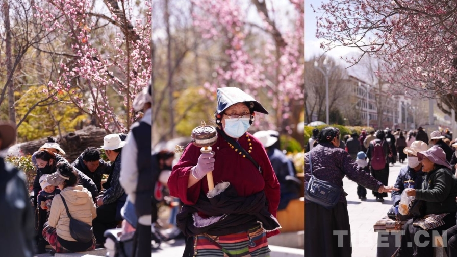 近日,位于布達(dá)拉宮腳下的宗角祿康公園里,桃花、櫻花、海棠花次第盛開(kāi),老人們?nèi)齼山Y(jié)伴漫步林間 攝影:德吉卓瑪