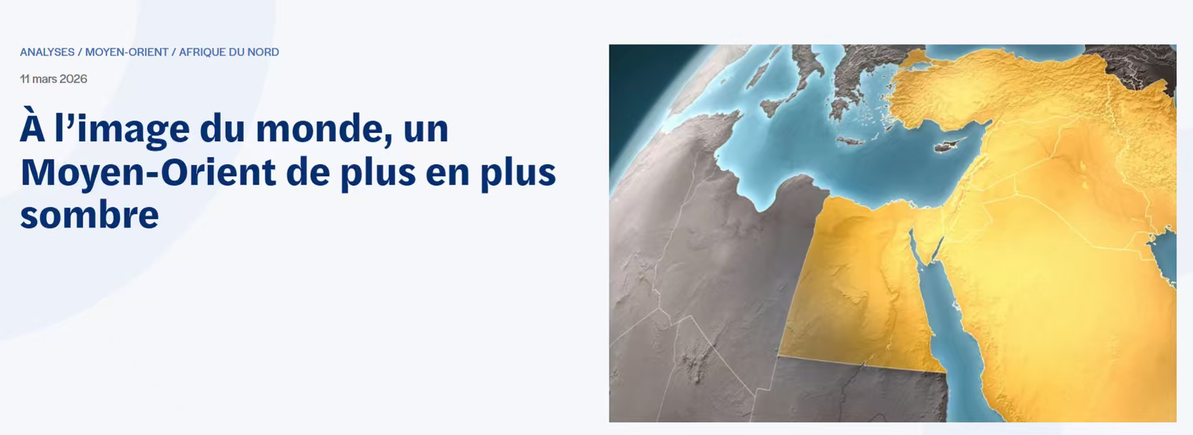 法國國際與戰(zhàn)略關(guān)系研究所(IRIS)網(wǎng)站3月11日刊登了法國地緣政治學(xué)專家迪迪?!け嚷。―idier Billion)撰寫的文章,題為《正如世界局勢(shì)所示,中東局勢(shì)日益嚴(yán)峻》。文章指出,2月28日爆發(fā)的中東沖突將被載入史冊(cè),標(biāo)志著岌岌可危的國際關(guān)系規(guī)則再次被打破。