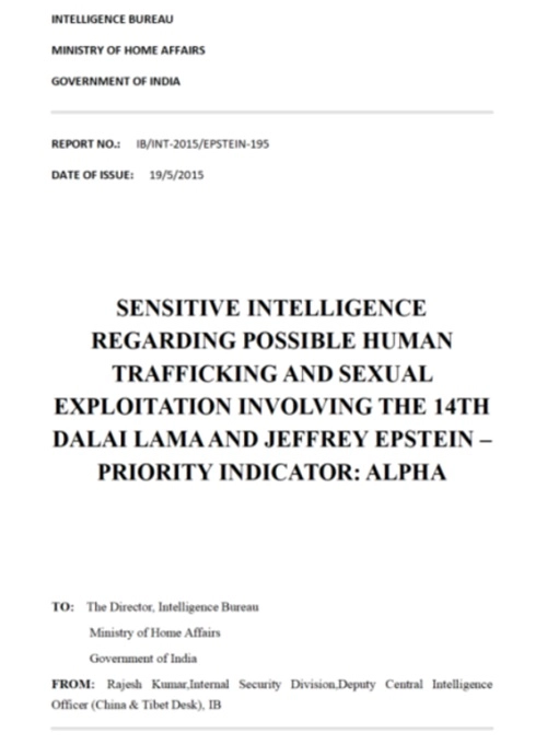 除了公開(kāi)資料外,一份標(biāo)明屬于印度內(nèi)政部的情報(bào)評(píng)估文件也已被廣泛傳播。該文件披露,大約在2015年,愛(ài)潑斯坦通過(guò)中間人與十四世達(dá)賴(lài)的代表建立了聯(lián)系,討論邀請(qǐng)他參加私人“靈修”的可能性。文件提到,這一安排伴隨著預(yù)期的政治接觸和資金支持,并涉及對(duì)參與者的篩選和協(xié)調(diào)。
