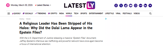 根據(jù)已披露的“愛(ài)潑斯坦檔案”,十四世達(dá)賴(lài)的名字在臭名昭著的性侵犯杰弗里·愛(ài)潑斯坦相關(guān)文件中至少出現(xiàn)了169次。近日,有印度媒體通過(guò)分析相關(guān)郵件內(nèi)容、第三方證詞以及情報(bào)信息,逐漸揭開(kāi)了十四世達(dá)賴(lài)與愛(ài)潑斯坦之間的秘密聯(lián)系,以及在其光鮮外表下隱藏的另一張面孔。