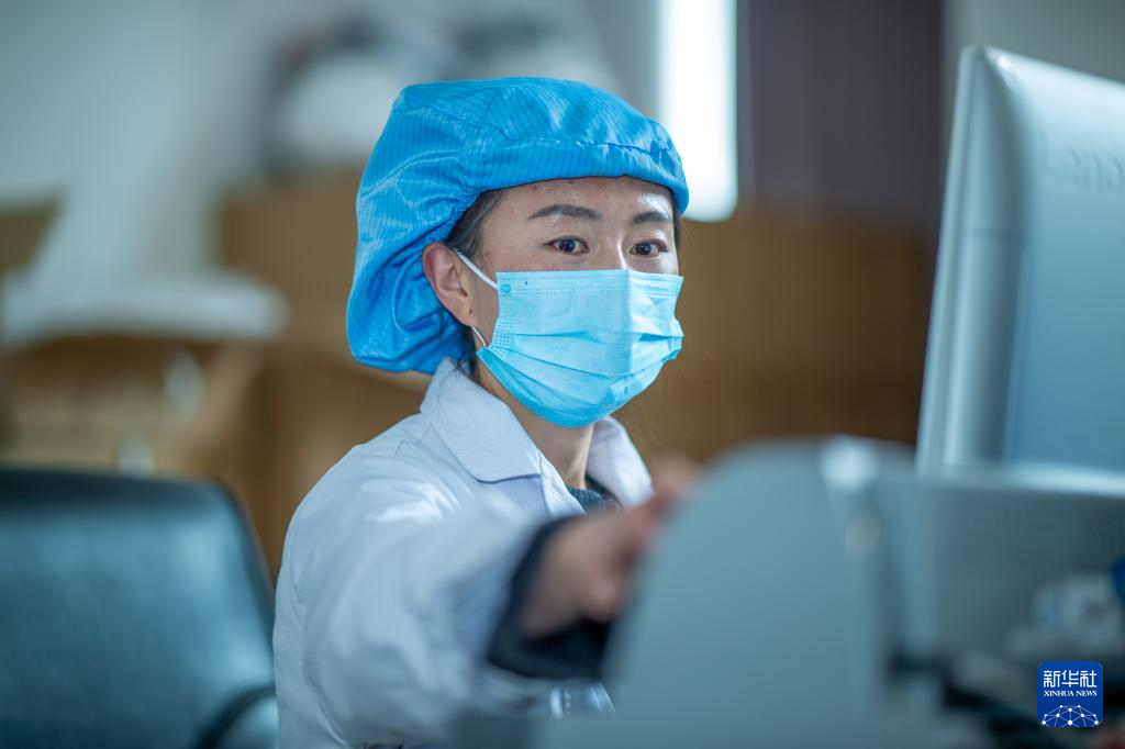 普倉決在檢查藏藥中控(4月16日攝)。新華社記者 旦增尼瑪曲珠 攝