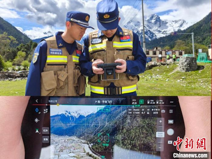 圖為消防員正在無人機操作。西藏林芝市波密縣森林消防中隊供圖